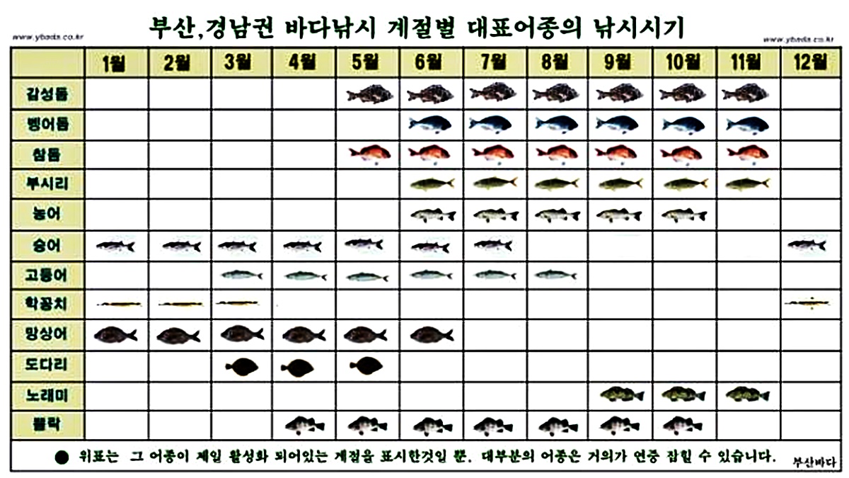 [어종별 낚시 시기]