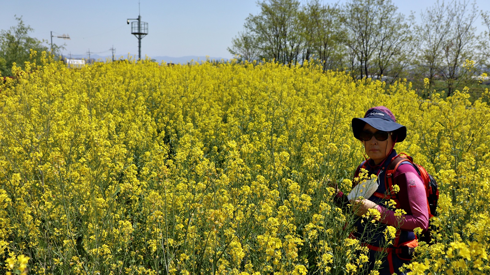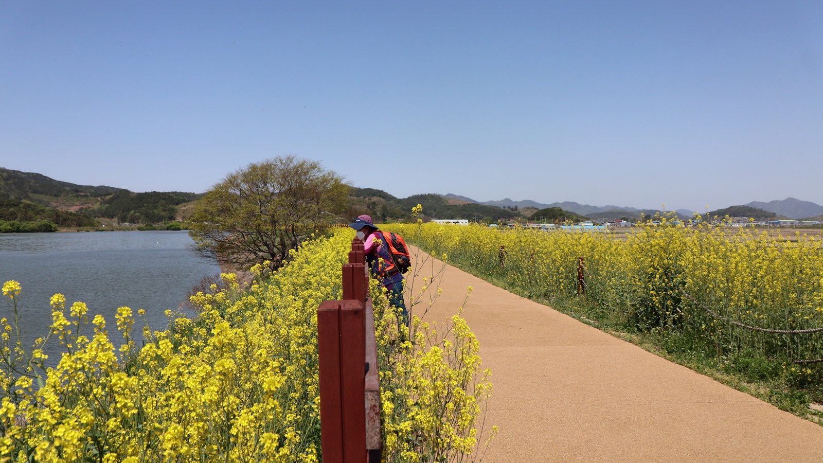 둑 길을 걸으면 유채꽃 향기가 코를 자극 합니다.