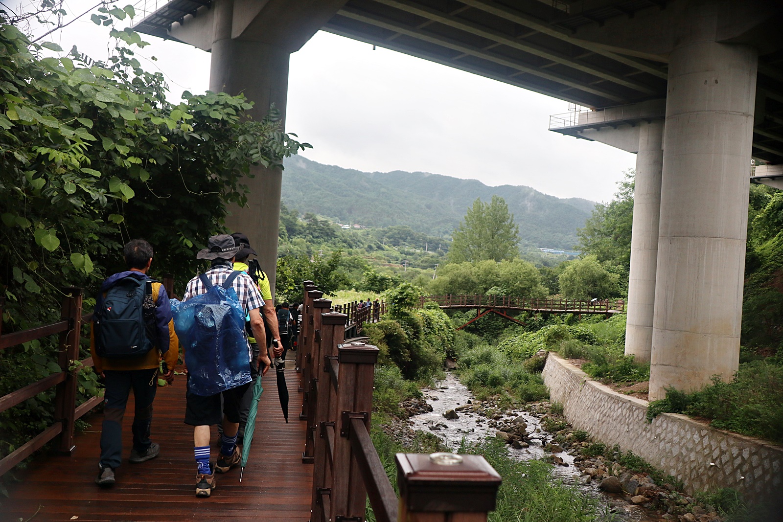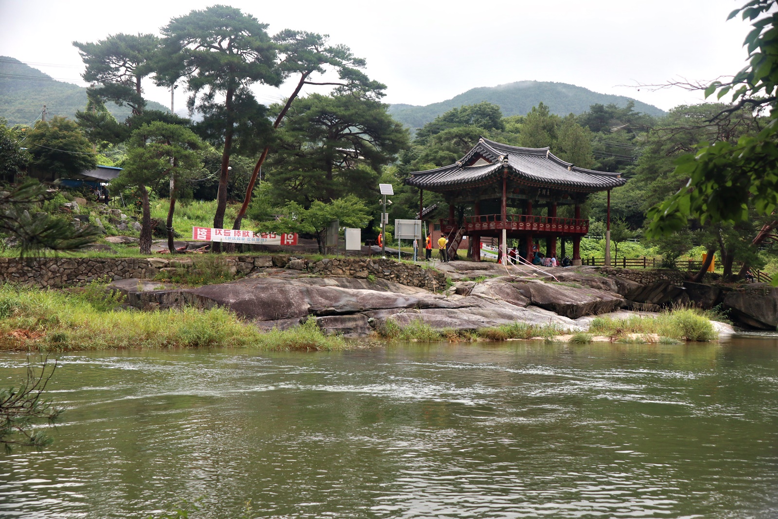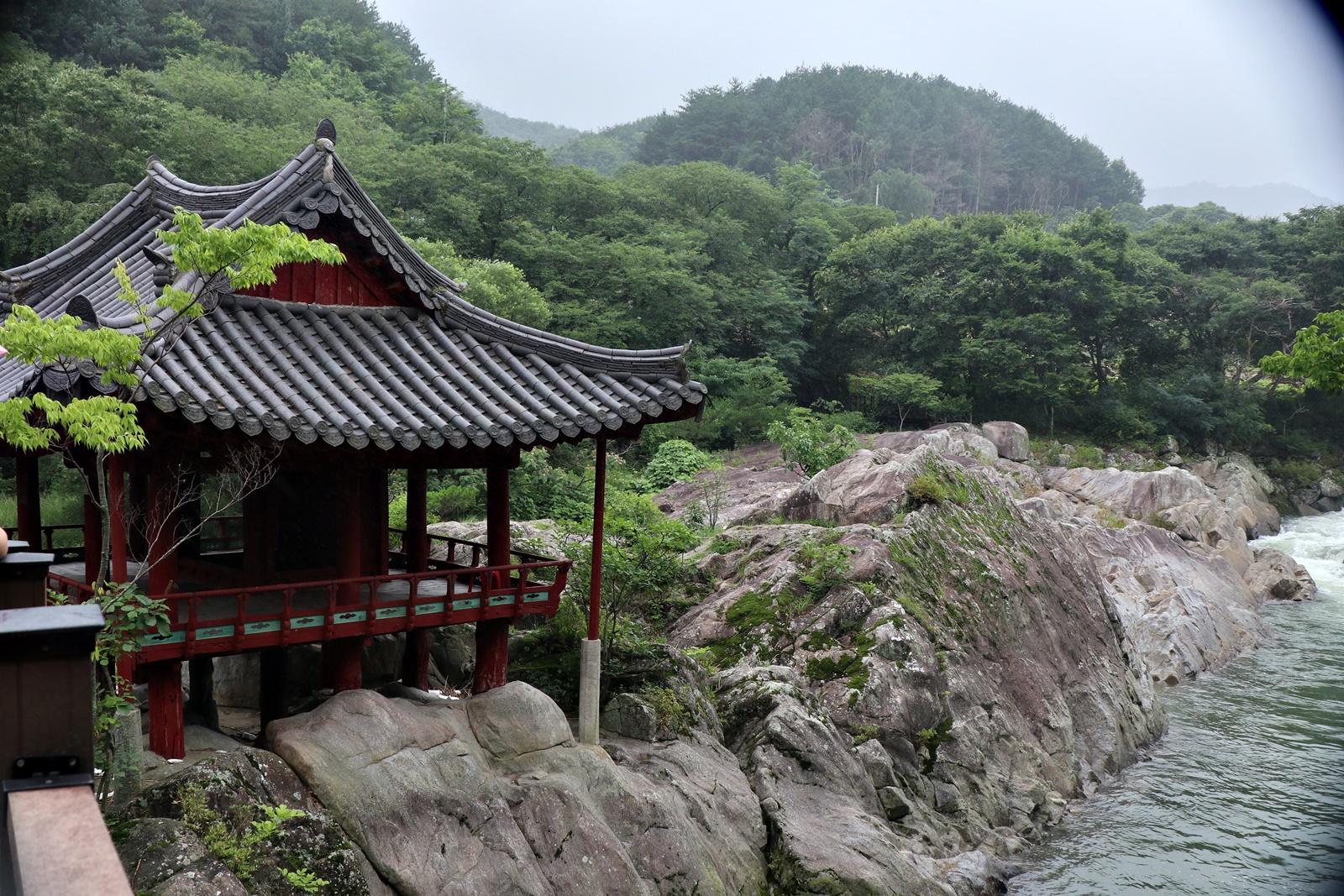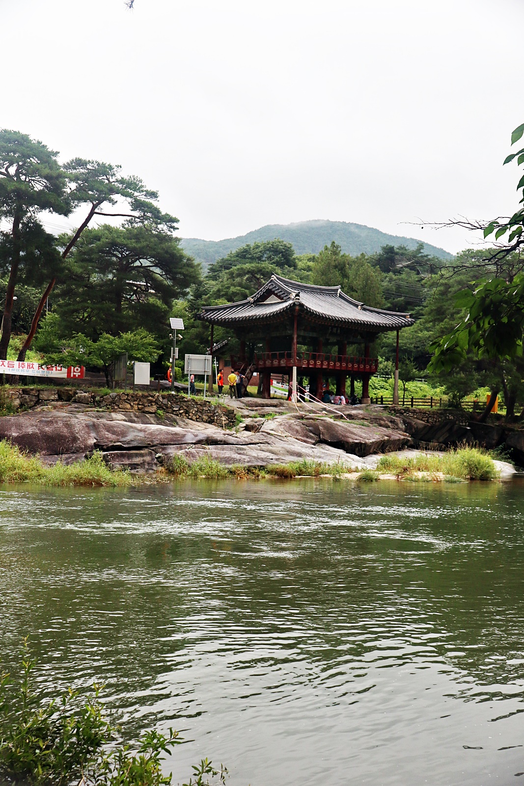 장마철이라서 계곡에 수량은 많은 편 이고 산 쪽 길은 조금 불편한 점도 있지만 전체코스 어려움은 없고 단 데크가 물기로 미끄러운 것 외는 너무 좋은 코스 입니다. 이름난 정자. 거연정 군자정 동호정 농월정 등을 지나는 코스로서 비교적 오르내림리 적은 코스에 길 입니다. 마을 앞 포장도로를 제외 하면 물길 따라가는 길이며 물에도 내려갈 수 있어 너무 좋습니다. 거연정-농월정 코스는 휴식포함 2시간이면 되는 비교적 단 코스지만 나무 그늘길이라 사계절 코스 입니다.