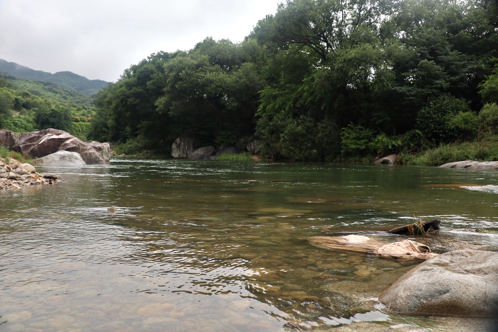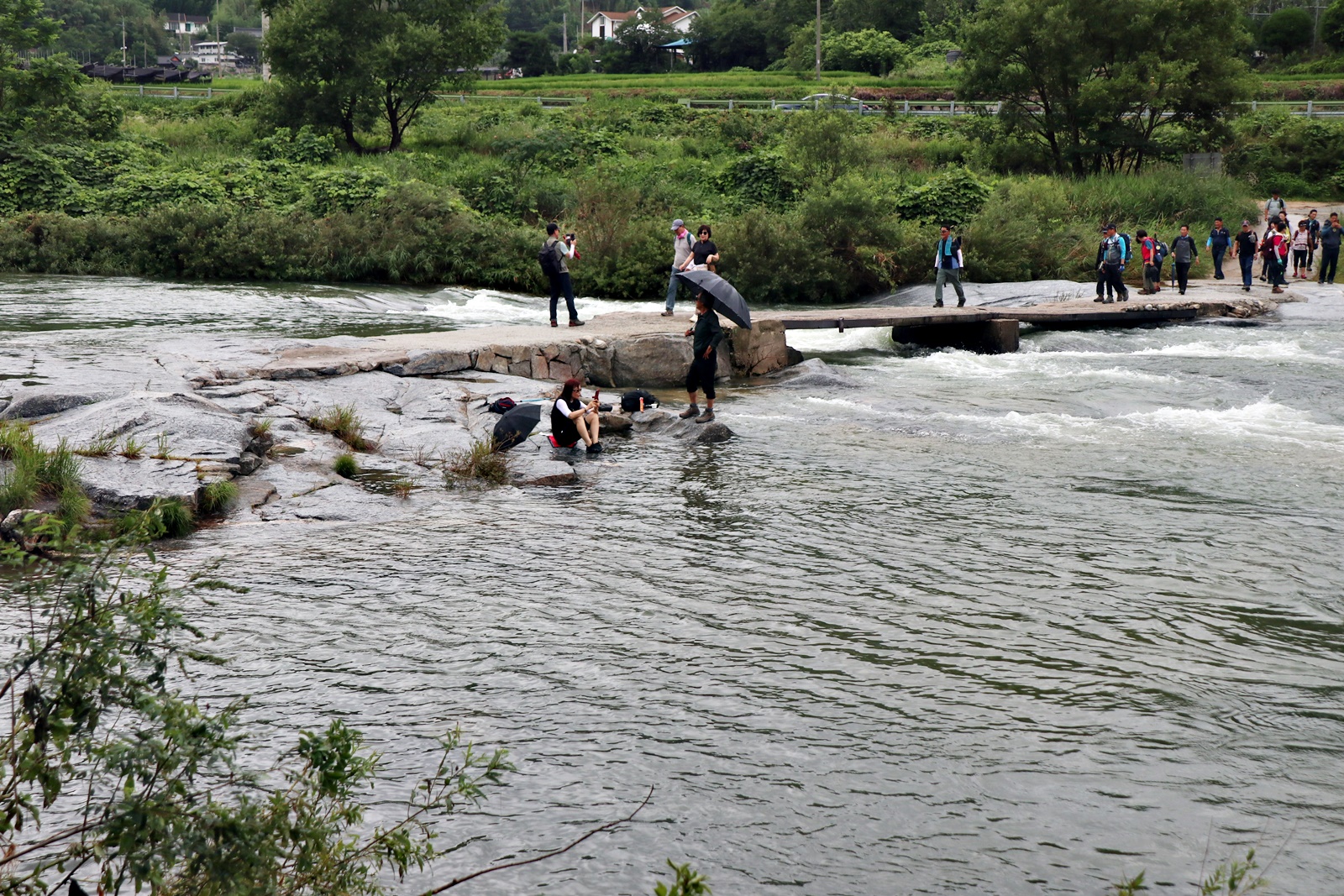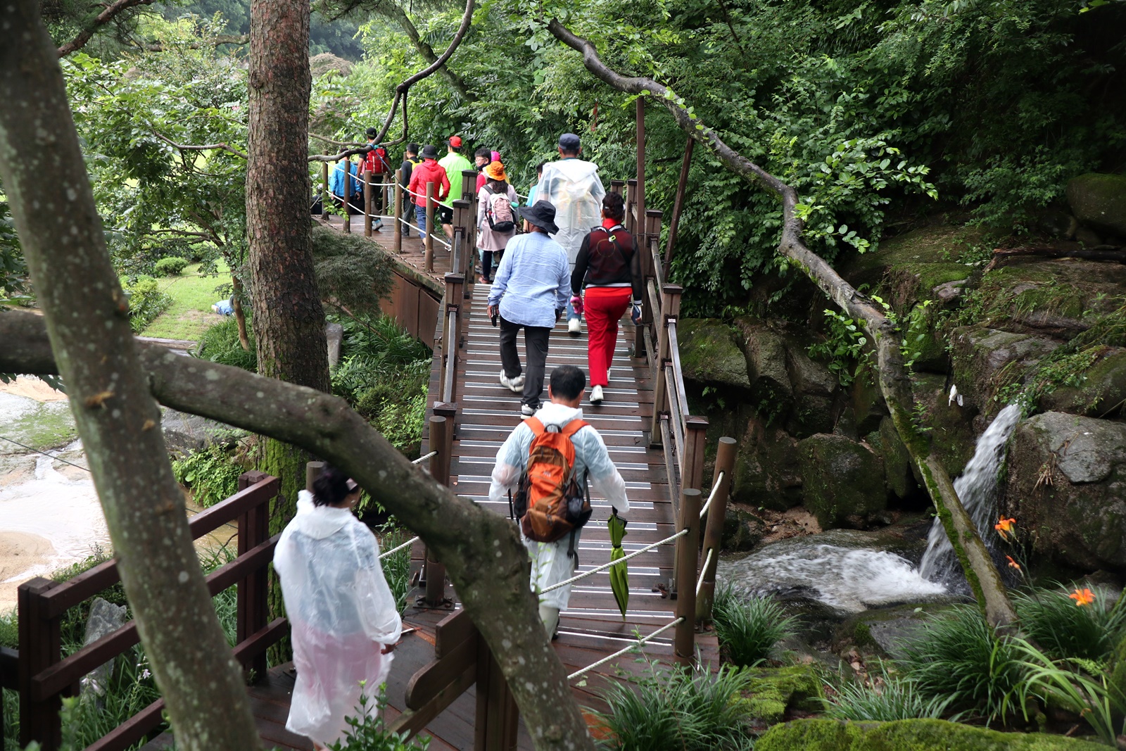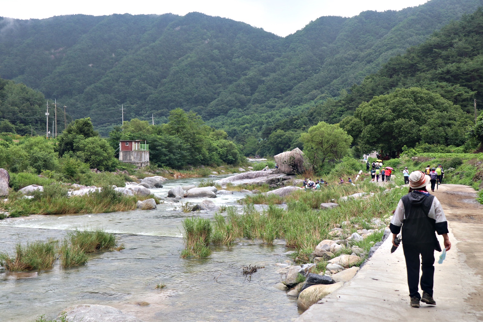 장마철이라서 계곡에 수량은 많은 편 이고 산 쪽 길은 조금 불편한 점도 있지만 전체코스 어려움은 없고 단 데크가 물기로 미끄러운 것 외는 너무 좋은 코스 입니다. 이름난 정자. 거연정 군자정 동호정 농월정 등을 지나는 코스로서 비교적 오르내림리 적은 코스에 길 입니다. 마을 앞 포장도로를 제외 하면 물길 따라가는 길이며 물에도 내려갈 수 있어 너무 좋습니다. 거연정-농월정 코스는 휴식포함 2시간이면 되는 비교적 단 코스지만 나무 그늘길이라 사계절 코스 입니다.