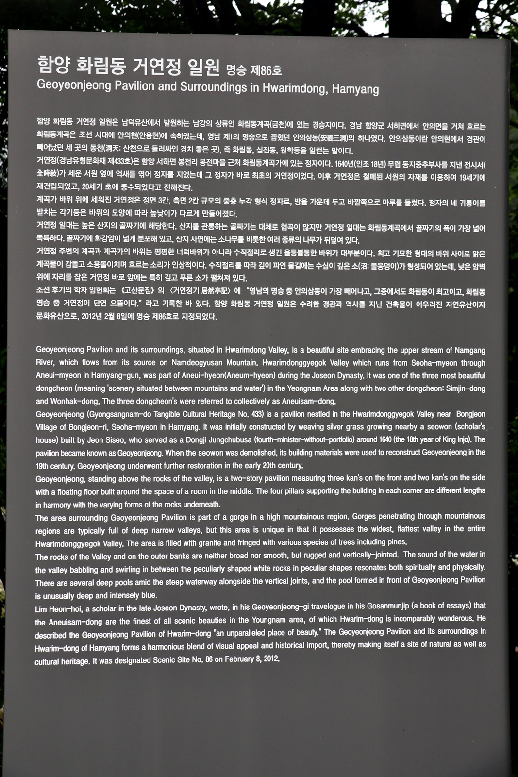 총회. 경남 함양군 서하면 화림계곡 선비 문화길